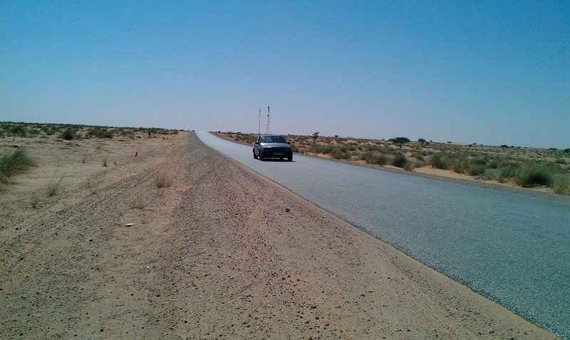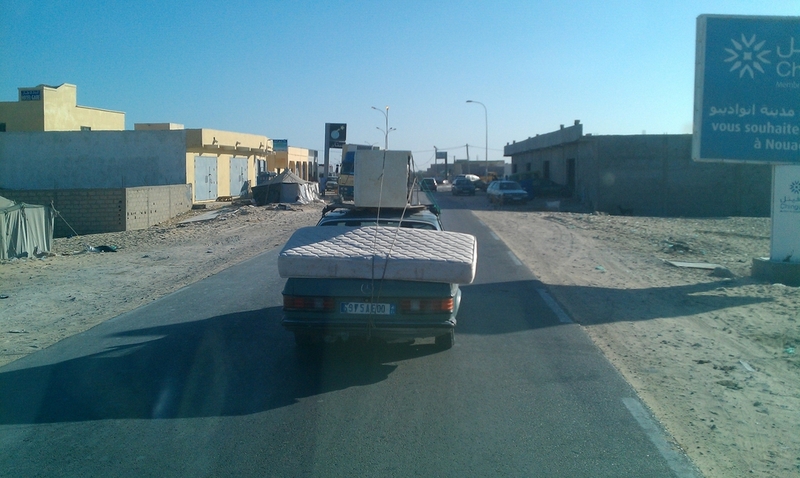 So langsam mußte Abschied genommen werden. Morgen mußten wir wieder nach Marokko zurück. Im Restaurant Pleine Lune aßen wir nochmal, wie bereits von der Hinfahrt bekannt, halbwegs lecker zu Abend. Humbourger und Club Sandwich mit Pommes. Dann ließen wir neben dem Campingplatz Abba den kaputten Reifen für 1500 UM von der Felge ziehen und einen Reifen, den wir ohne Felge dabei hatten, aufziehen. Wir vernichteten abends die letzten Wodkareste mit Cola und Rani Mango. Lummi ging um 23 Uhr schlafen, Blondie und ich setzten uns an die Straße, um das WLAN von der Bank gegenüber zu schnorren. Blondie ging auch bald schlafen, da saß ich dann mit meinem Campingstuhl, den Laptop auf dem Schoß, alleine vor dem Abba. Nach einer Weile blieb einer der bislang kommentarlos, aber interessiert an meiner hier etwas ungewöhnlichen Erscheinung vorbei gehenden, Mauretanier stehen und begann sich mit mir zu unterhalten. Auf Französisch. Ich verstand nur jedes dritte Wort und konnte nur bruchstückhaft antworten, unterhielt mich dennoch eine halbe Stunde mit ihm. Er war recht gebildet und gepflegt und hatte wohl ehrliches Interesse an mir als Touristen und wollte so allerhand über Europa wissen. Ich scheiterte daran, ihm zu erklären, daß es gerade bei uns zuhause arschkalt war und etwas, das man „Schnee“ nennt, vom Himmel fällt. Von seiner Seite durfte das lange nicht mehr gehörte „Hitler gutt“ nicht fehlen. An irgendeinem Punkt hatte das Gespräch mangels gemeinsamer Sprachkenntnisse keinen wirklichen Zweck mehr. Wir verabschiedeten uns sehr herzlich und ich ging nach einer letzten Meldung an die Heimat schlafen. Die Straßenhunde bellten im Kanon mit den Muezzinen, die aus irgend einem Grund die ganze Nacht Party machten.