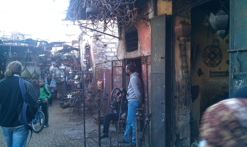 Blondie wußte von seiner letzten Tour vom Handwerkerviertel, wo – eigentlich außergewöhnlich – der Kram für den Touristensouk hergestellt wird. Man muß dazu nur durch den Souk hindurch laufen statt einen Rundkurs zu machen. Recht interessant.