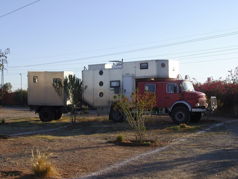 uns einen der Bungalows, das kostete 360 MAD, der Bus parkte dafür kostenlos. Im