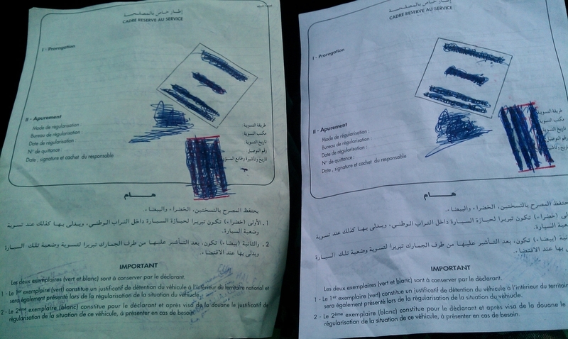Der erste Zolltyp kam wieder zurück zu uns. Professionell schwärzte er unsere Zollpapiere und teilte uns mit, daß wir unsere Einreisestempel im Terminal annullieren lassen müßten. Dies erledigten wir. Wir hätten genauso gut ohne neue Einreisestempel oder Annullierung wieder zurück ins Land fahren können, das hätte keiner gemerkt – reines Chaos hier. Im Terminal fragten wir uns nach dem zuständigen Polizisten durch, dieser trug unsere Namen in eine Kladde ein und setzte einen „Annullé“-Stempel in unsere Pässe.