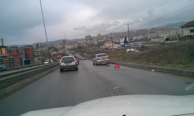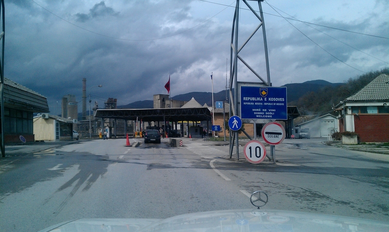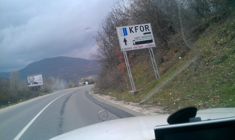 Ein paar Ampelkreuzungen, an denen Priština angeschrieben stand, als wäre es nichts besonderes, später erreichten wir auch schon die Grenze, die uns hinter einer Kurve gelegen völlig überraschte. Es wehte eine albanische Fahne über dem Posten, nicht die offizielle Fahne der „Republik Kosovo“. Ein kleiner Vorgeschmack.