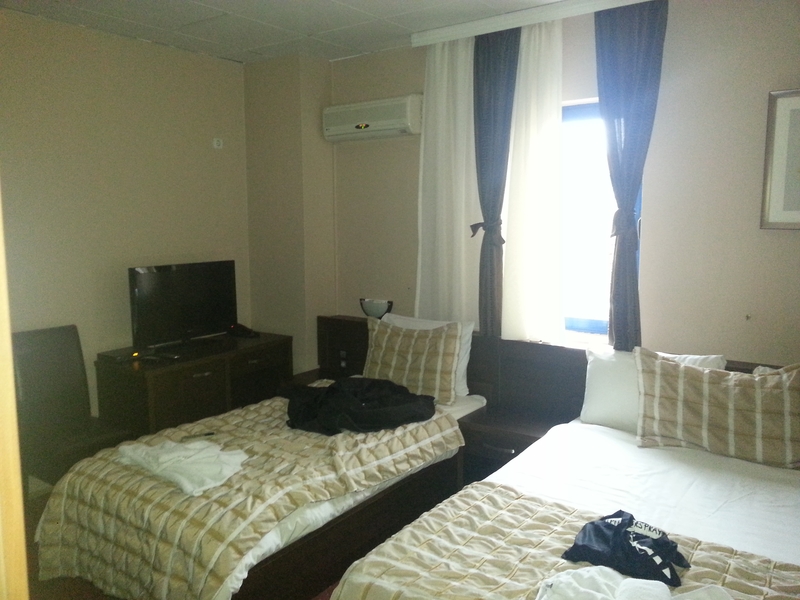 Bis Priština war es dann auch nicht weit. Es sah links und rechts sehr nach Albanien aus, einen Tick moderner sogar, da viele Häuser aus naheliegenden Gründen sehr neu waren. Vor Ort angekommen fragten wir im erstbesten, nach unserer Preiskategorie aussehenden Hotel nach. Es kostete 70 EUR für alle vier und wurde daher sofort in Beschlag genommen. Hotel Real in der Pashko Vasa 14.