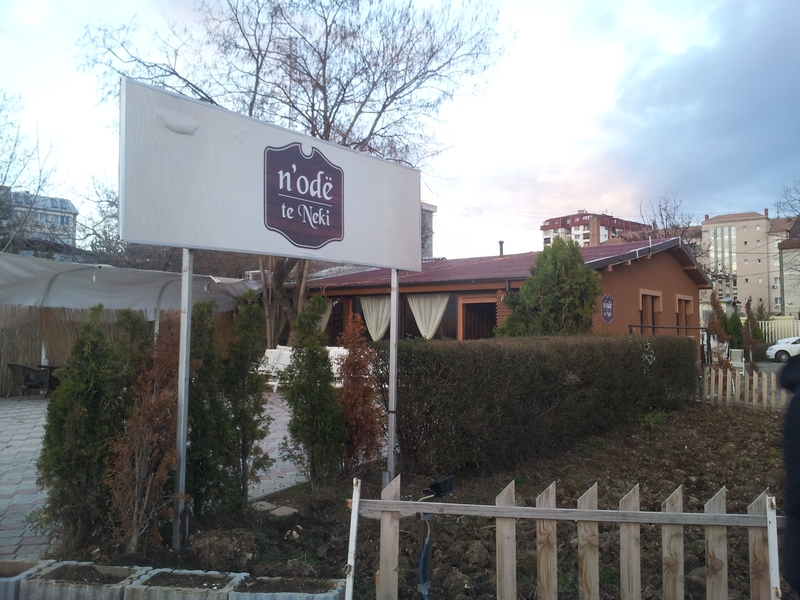 Nachdem wir kurz relaxed hatten, gingen wir am Newborn-Monument vorbei zum Stadion von Priština. Dort wurde Lars von einer Freundin, die erst kürzlich hier war, ein gutes Restaurant empfohlen: Das „N'Ode te Neki“.