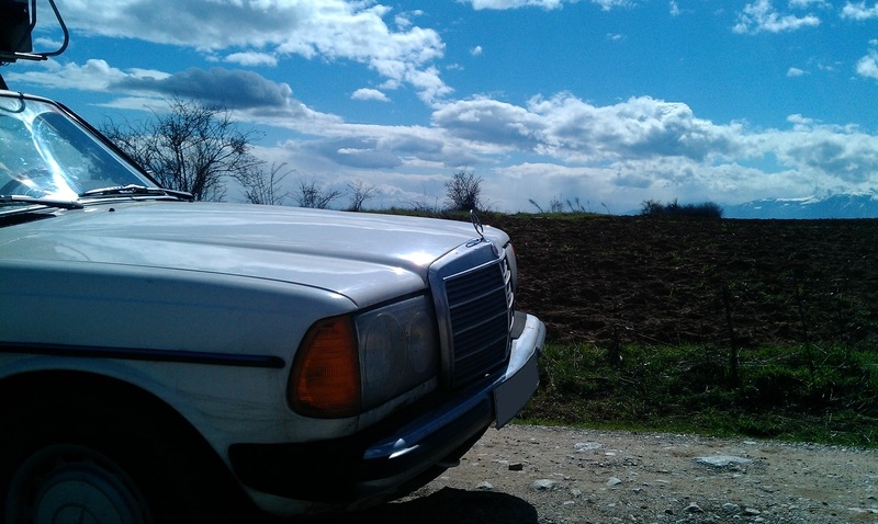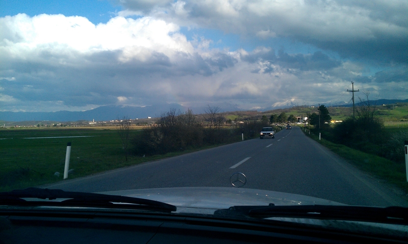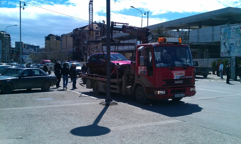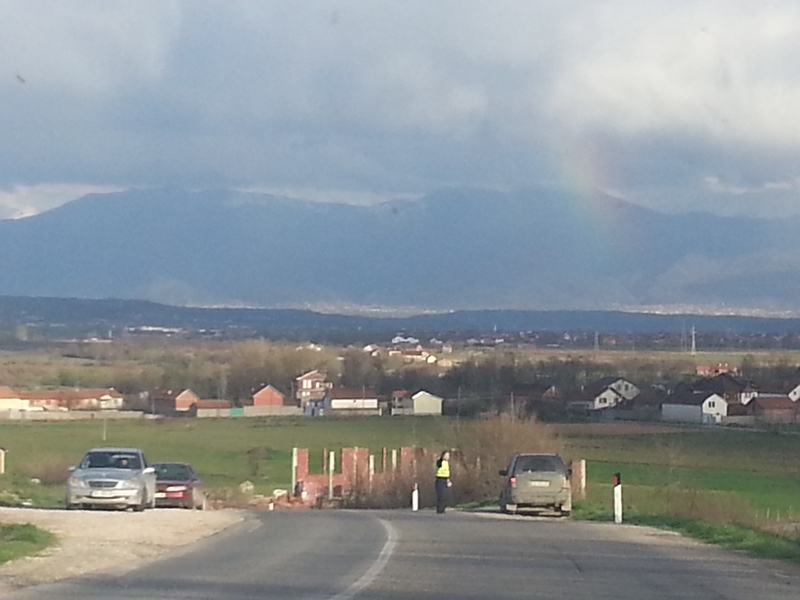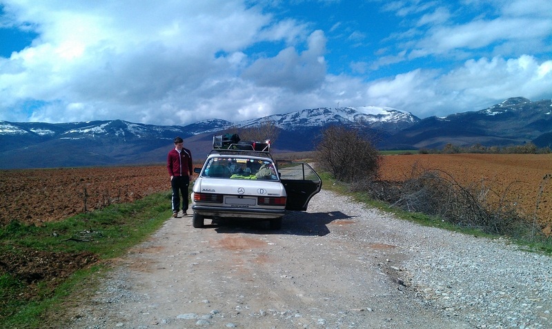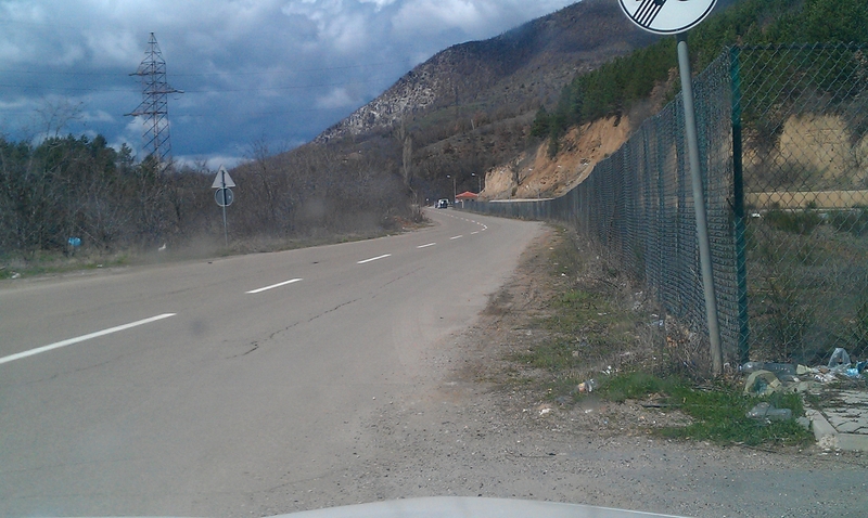 Dieses Photo im Rahmen einer Pinkelpause nahmen wir zum Anlaß, einen Aprilscherz („Achsbruch im Kosovo“) nach Hause zu senden.