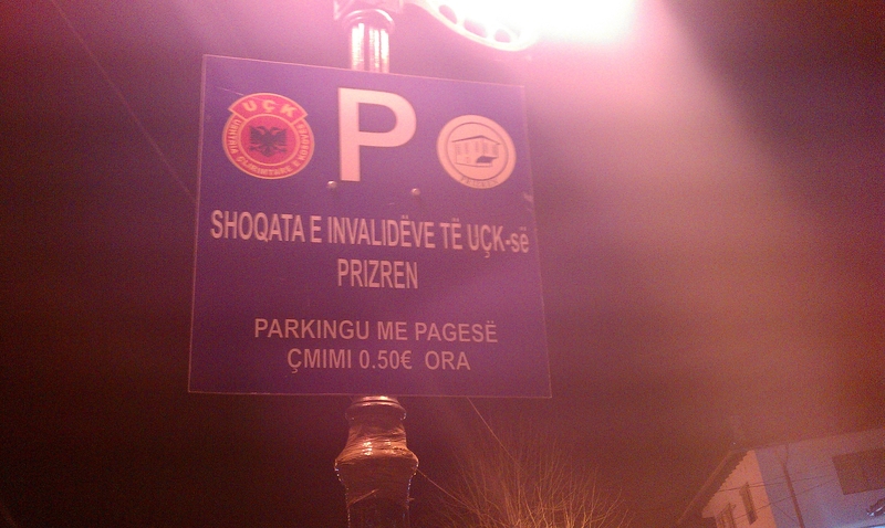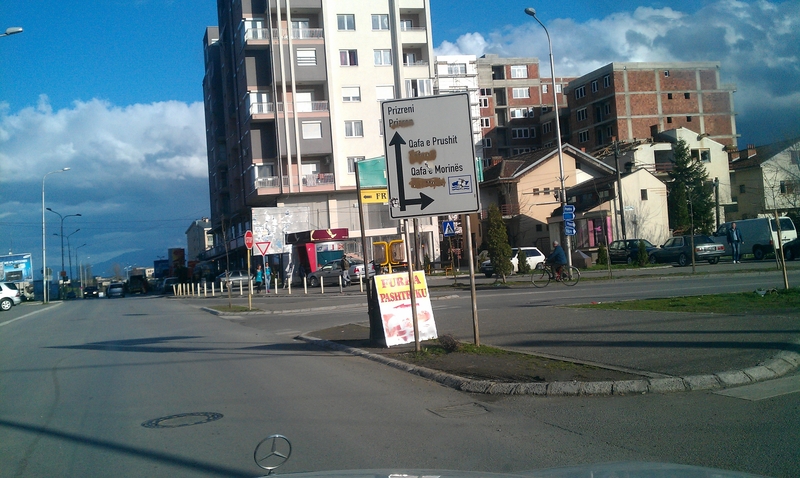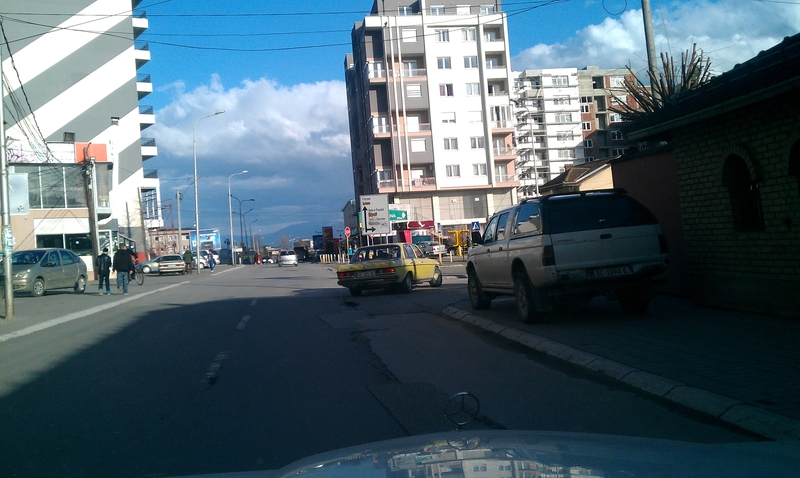Als wir zum Auto zurückkamen, hing ein Zettel unterm Scheibenwischer. Ich nahm ihn an mich, es war ein Knollen über 0,60 EUR. Sollen sie ihn mir hinterherschicken, dachte ich mir, und stieg ein. Da kam ein schlacksiger Typ herbeigerannt. Er sprach nur albanisch und hielt die Hand auf. Ich dachte erst, er wollte betteln, doch zeigte auf den Zettel, den ich immer noch in der rechten Hand hielt. Da ging mir ein Licht auf. Er war für die Parkgebühren zuständig und sammelte das Geld, das er mittels der Zettel an die Autos tackerte, ein. Immer, wenn eine Stunde ablief, steckte er einen weiteren 60-Cent-Zettel an die Scheibenwischer. Sehr ausgeklügeltes System, könnten andere Länder und Städte gerne übernehmen. Ist mir immerhin sympathischer als Parkkrallen, Abschleppdienste oder frei erfundene Preise von marokkanischen Parkwächtern, die verschiedene Preise für verschiedene Nationalitäten haben. Nächster und letzter Halt für heute war Prizren, ein Städtchen, in dem deutsche Soldaten stationiert sind, da es zum „deutschen Sektor“ des NATO-Kosovos gehörte. Hier mußten wir noch ein Hotel finden.