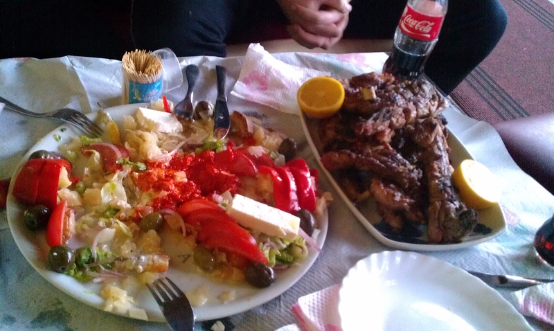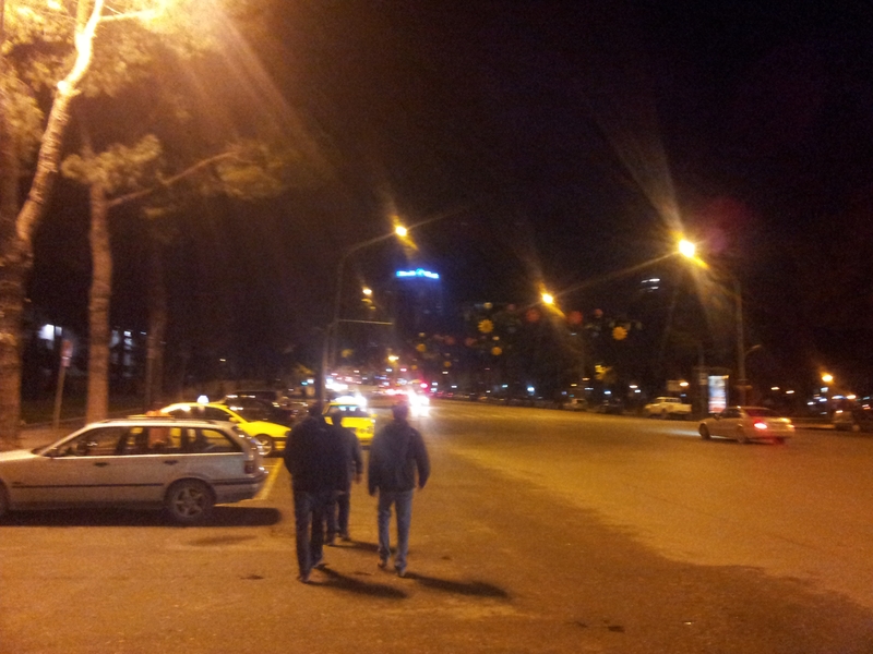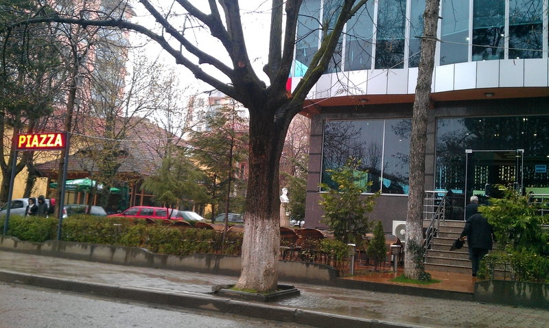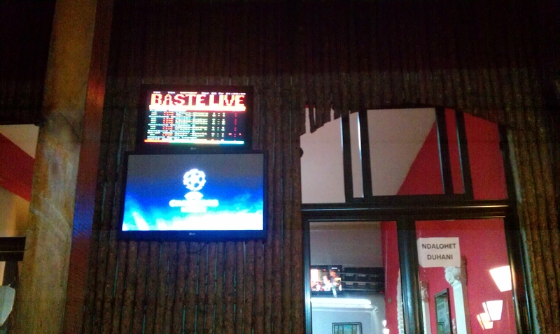 In Tirana angekommen steuerte ich uns wie vom Autopiloten beseelt zum Hotel Viktoria, das ich auch noch von letztem Mal kannte und das absolut OK war. Es lag in Richtung Elbasan, doch Schilder dorthin gab es nicht. Ich verließ mich darauf, daß ich alle Ecken Tiranas richtig wieder erkannte, und es klappte. Wir bezogen die beiden Zimmer (insgesamt 50 EUR) und bestellten uns wie letztes Mal in Taxi in die Stadt (700 ALL). Dort wollten wir etwas essen, trinken und Champions League schauen. Der Taxifahrer wußte natürlich sofort die Nr.-1-Adresse dafür und lud uns bei einem Wettbüro mit integriertem Restaurant (Pisha Top Bast) ab.