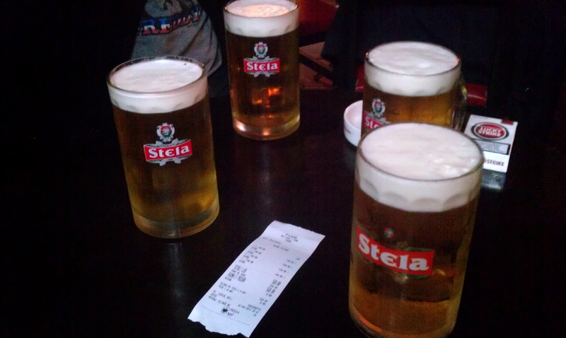 Unweit des Sky Towers befand sich die ganz ordentliche Bar voller junger Leute, dessen Name mir immer noch unbekannt ist, weil sie offensichtlich keinen hat. Dort ließen wir es uns schmecken. Einige Bier für insgesamt 1500 ALL, und kostenlose Tortillas als Snack. Es gingen noch einige Runden Skat durch, bevor wir müde waren und ein Taxi zum Hotel zurück nahmen (Glück gehabt, nur 500 ALL).