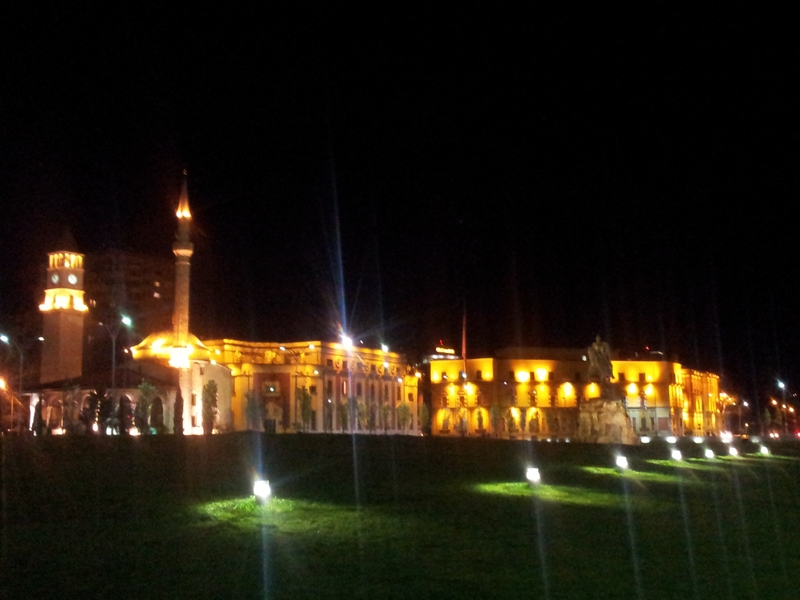 Anschließend starteten wir einen von meiner Wenigkeit geführten Stadtrundgang. Schließlich war ich schon zwei mal hier, dachte ich. Eigentlich funktioniert mein geographisches Gedächtnis auch sehr gut. Nachdem wir den Skanderbeg-Platz mit seinem monströsen Mosaik begutachtet hatten ...