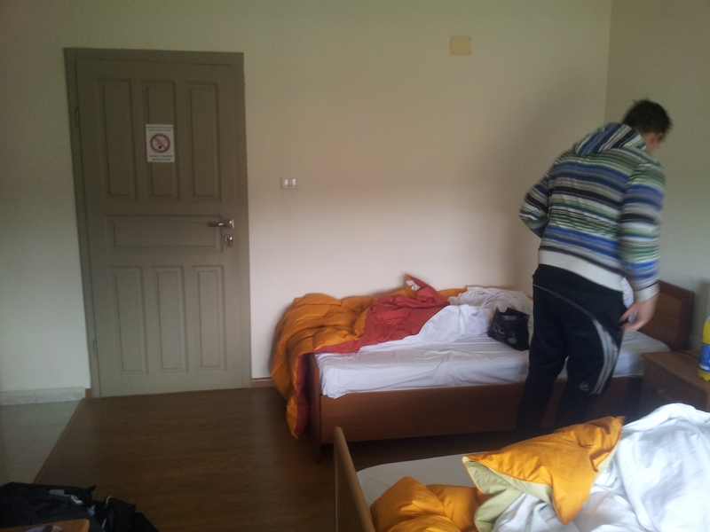 Nach einer kurzen und freundlichen Verkehrskontrolle in Foča verließen wir die Republika Srpska dann auch wieder und betraten den Kanton Sarajevo. Wir steuerten das erstbeste Hotel, das Hotel Italia, an und ließen uns die billigsten zwei Doppelzimmer geben. Es kostete 100 EUR und war damit an der obersten Schmerzgrenze. Aber es war schon sehr spät, und wir hatten keine Lust, weiterzusuchen. Der freundliche Page bot uns an, Pizza zu bestellen und sie von ihm aufs Zimmer liefern zu lassen, was wir gerne annahmen.