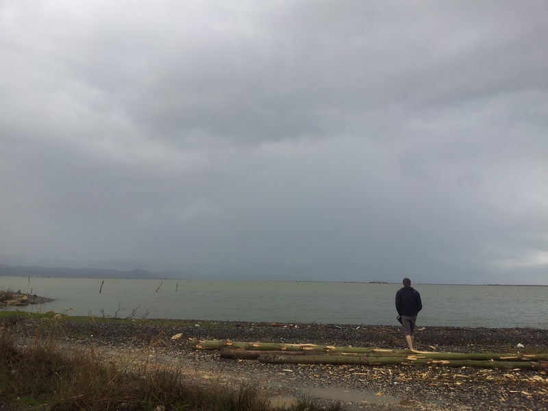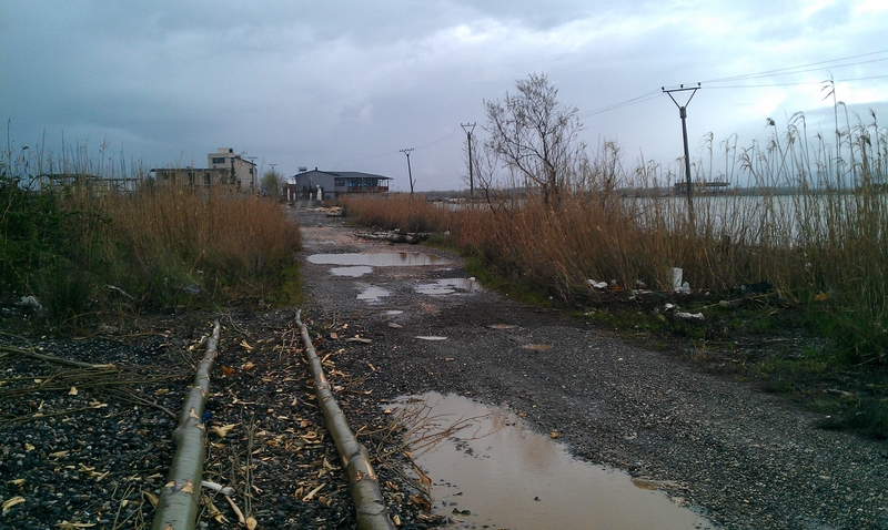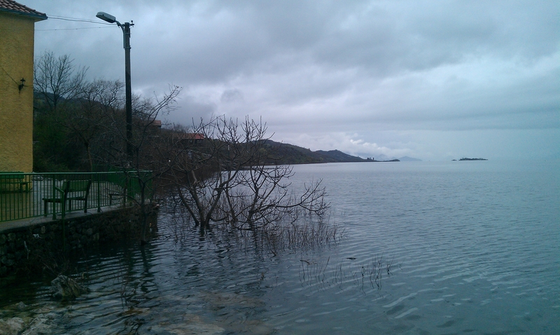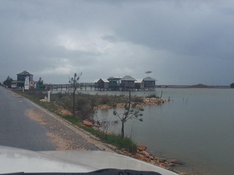 Kaum waren wir draußen, schlug das zwar wechselhafte aber meist sonnig-warme Frühlingswetter in auf dieser Fahrt bislang ungekannten Starkregen um. Bei Maminas bogen wir ab, eigentlich um die Landzunge von Shetaj zu erreichen und dort zu baden. Aber auch in deren Richtung sah es nicht besser aus. Ich machte die Not zur Tugend, erledigte vor Ort in einer bruchreifen Wechselstube das Geldwechseln und drehte ab. Es hatte keinen Zweck. Nun ging es nach Norden, wie es eigentlich nach dem Baden angedacht war. Nach dem Tanken, bei dem wir die letzten albanischen Mickeymaus ausgaben (38,29 L, 6100 ALL + 5 EUR), probierten wir es noch in der Lagune von Patok, wo wir vor einem Jahr wild gecampt hatten.