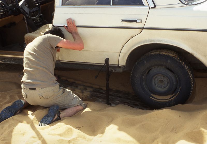 „Bei der Auffahrt auf den Strand bei Nouakschott klemmt das Lenkradschloss.