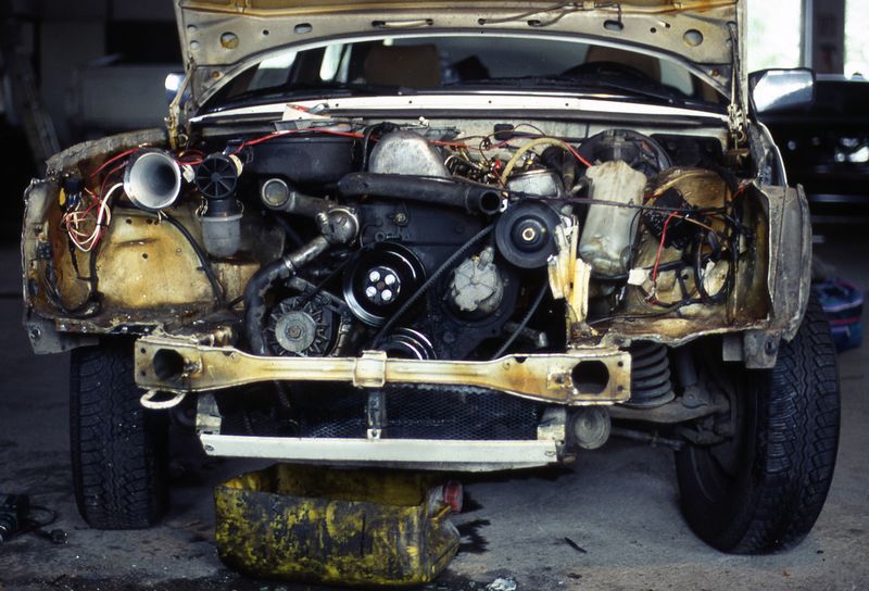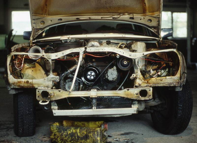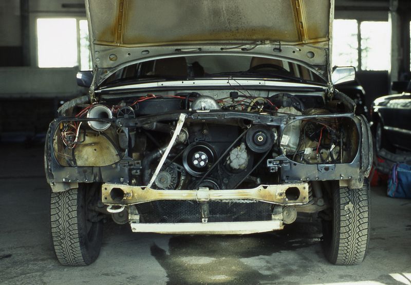 Kotflügel, Frontmaske, Kühler, Scheinwerfer, Stoßstange werden über Nacht getauscht.